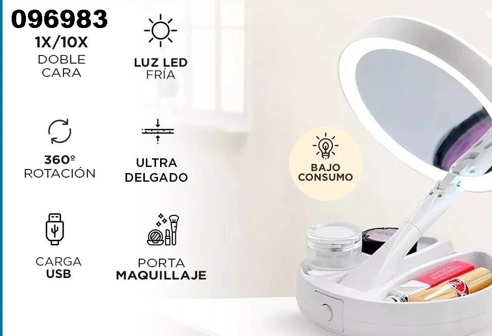 XJ-988 ESPEJO CON LUZ LEZ RECAGABLE USB 360