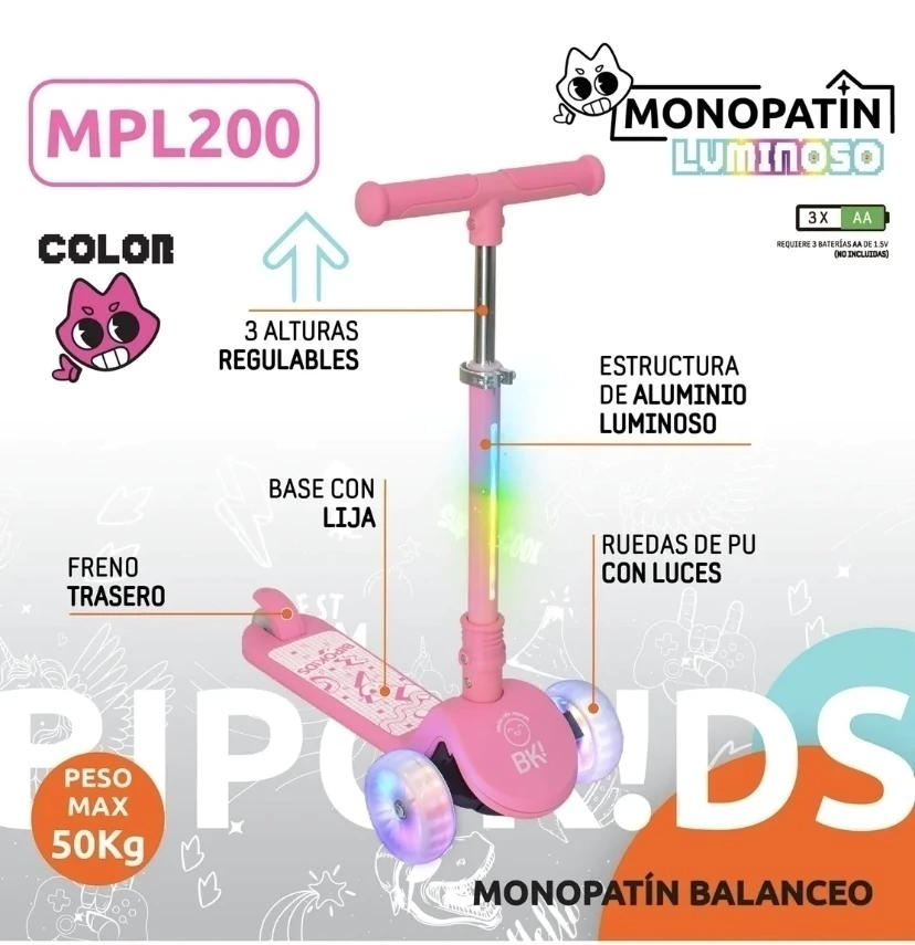 Descubre el Monopatín Luminoso, el compañero ideal para los amantes de la aventura y la diversión. Equipado con luces brillantes y un botón para activar diversas funciones, este monopatín transformará cada paseo en una experiencia única.